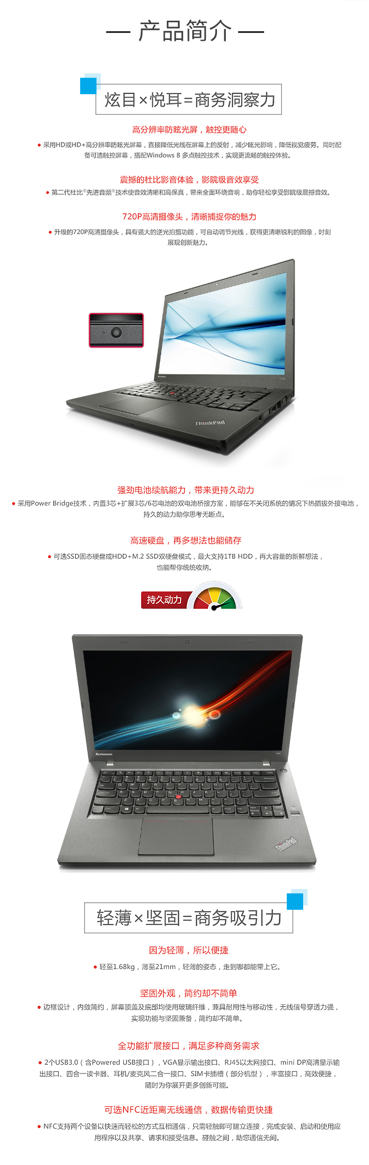 | 屏幕 | 14英寸,LED背光,比例16:9,分辨率 1366*768 |