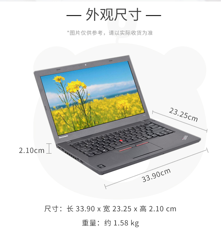 | 屏 幕: 14英寸,LED背光,比例16:9,分辨率1366x768 |